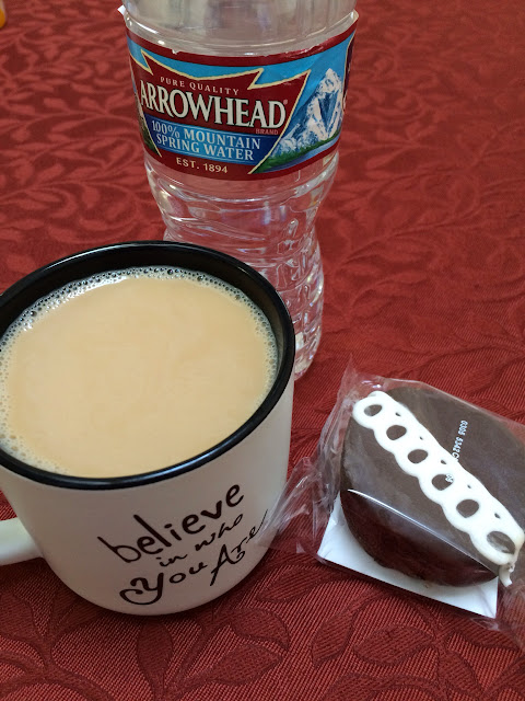 For breakfast I had 3 blueberry pancakes topped with 1/4 of a cup frozen blueberries and 1/2 of banana with sugar free syrup. I had coffee with creamer and stevia sweetener and bottled water to drink.Breakfast Cal Intake: 675